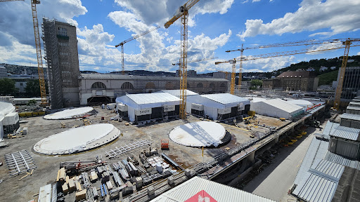 Die Dachterasse im vierten Stock ist ein weiteres Highlight und bietet einen beeindruckenden Blick auf das Ausmaß und den aktuellen Stand der Bauarbeiten.