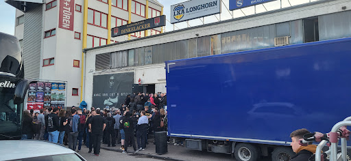 Wieder einmal ein altes Gebäude welches eigentlich für eine ganz andere Nutzung gebaut wurde. Im Gegensatz zu vielen anderen Konzertlocations dieser Art waren hier ganz offensichtlich Profis am Werk. Direkt als erstes sind mir die seitlichen erhöhten Plätze sowie der riesige mittige Aufbau ins Auge gefallen. Diese Konstruktion in der Mitte beginnt, mit ausreichend Platz zur Bühne, relativ flach und wird treppenförmig nach hinten höher. Dies ermöglicht egal aus welcher Position einen optimalen Blick auf die Bühne. So haben hier auch kleinere Leute weit hinten gute Sicht aufs Geschehen. Rechts findet man zuerst einen Tresen der an diesem Tag für den Verkauf von Merchandising Artikeln genutzt wurde. Direkt angrenzend beginnt eine lange Getränke Theke, an der ausreichend Personal war um keine langen Wartezeiten aufkommen zu lassen, obwohl die Veranstaltung recht gut besucht war. Die Toiletten sind zwar auch ausreichend dimensioniert und zumindest bei den Herren auch ohne Wartezeit gewesen. Bei den Damen kam es zwar zu einer kleinen Schlange, im Vergleich zu anderen Locations jedoch im Rahmen. Scheinbar gibt es auch noch eine zweite Etage die ich aber nur von unten gesehen habe. Ob diese zum offiziellen Bereich oder sowas wie ein Backstage Bereich für die Bands ist kann ich leider nicht sagen. Das gesamte Personal, angefangen am Einlaß bis zum Service am Ausschank war professionell und schnell. Der Sound in der Halle war echt klasse. Equipment und die Leute von der Technik ebenfalls auf hohem Niveau. Über Parkplätze kann ich nichts sagen da ich mit der Straßenbahn gekommen bin ( ca 2min Fußweg von der Haltestelle bis zum Veranstaltungsort). Da gegen Abend im weiteren Umfeld scheinbar recht wenig los ist und einige Gäste in der Straße des LkA Longhorn bis fast vor der Tür geparkt haben denke ich es wird auch nicht unmöglich sein einen Parkplatz in der Nähe zu finden. Ein toller Abend mit Bands denen man sichtbar angemerkt hat wieviel Spaß es gemacht hat in dieser Location vor diesem Publikum zu spielen. Konzert mit Partycharakter in professionellem Rahmen. ...