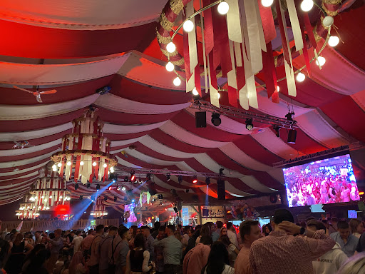Die Stimmung im Zelt war durchweg fantastisch – von der traditionellen Blasmusik bis hin zu den modernen Partyhits wurde für jeden Geschmack etwas geboten. Die Live-Band hat das Publikum immer wieder mitgerissen, und es war schwer, nicht selbst auf die Bänke zu steigen und mitzufeiern.