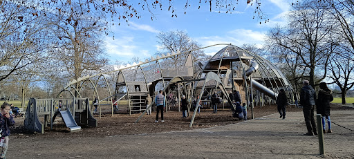 An für sich ist der Spielplatz schön angelegt und umgeben von Schatten spendenden Bäumen und ein paar (nicht sehr ausreichenden) Sitzmöglichkeiten. Die neue Konstruktion wirkt modern und der Spielbereich für die ganz kleinen ist nett aber viele Dinge sind nicht gut durchdacht oder/ und konstruiert: Die Röhren der Rutschen sind nicht rund sondern "modern" eckig und kantig. Der Effekt ist, dass die Kinder beim Rutschen hin und her geworfen werden, sich hierbei den Kopf oder die Schulter anhauen und zum Schluss mehr unten raus fallen als heraus gleiten. Die kinder reiben sich dann den Hintern... scheint also nicht sehr angenehm zu sein. Die Holzelemente sind auf einer Stahlträger Konstruktion angebracht. Insbesondere die Zwischenplattformen für den Aufstieg sind sehr niedrig, sodass sich die Kinder die Köpfe meist nicht am Holz sondern den heraus stehenden Stahlelementen anstoßen. Die Altersspanne, die der Spielplatz abdeckt ist sehr hoch doch die Kinder zwischen den Altersgruppen "sehr klein" und "Schulkind" kommen nicht sonderlich gut auf ihre Kosten: im großen Klettergerüst brauchen sie viel Hilfe, um überhaupt hoch zu kommen während der Bereich der ganz kleinen kaum Herausforderungen bietet. So bleibt vor allem Frust und gleichzeitig Langeweile über.