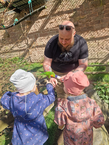 Nun zu den Minuspunkten: Beim Einlass auf die Frage nach 3 mal Tierfutter wurde patzig geantwortet: Heute nur 2mal, es ist Feiertag, da wollen alle was haben. Nunja der Feiertag kam jetzt nicht so überraschend, da hätte man sich drauf vorbereiten können und dementsprechend mehr Futter zur Verfügung stellen können. Auch das man bei den Loris Sonderfutter benötigt, war für uns nicht ersichtlich, erst an der Lorianlage selbst. Gut also zurück gelaufen und Lorifutter gekauft. Auch hier auf die Nachfrage nach 2x Futter, wurde patzig geantwortet: brauchen sie nicht, die werden wahrscheinlich eh nicht kommen. Auf meine Mitteilung, nunja wir haben aber 2 Kinder, da will natürlich jeder eins, wurde eingegangen und immerhin das eine Futter auf 2 Dosen verteilt. Leider hatten wir aber Pech und die Loris hätten wahrscheinlich noch 3 Dosen mehr gegessen. Nochmal zurück und nochmal kaufen wollten wir jedoch nicht. Für die Kinder muss einiges mehr getan werden. Vorallem für kleine Kinder. Wickelraum Fehlanzeige. Nur ein kleiner Klapptisch eingeengt zwischen den beiden Damentoilettentüren. Sowohl fürs Wickeln als auch für die Toilettenbesuche totaler Mist. Auch gab es hier keine Hygieneunterlagen dafür obwohl ein "Ständer" dafür am Klapptisch war. Naja gut die meisten Eltern haben sowas dabei, aber falls mal nicht, muss man sein Kind eben auf dieses kalte Plastikteil legen. Auch Papas mit Kindern wird es hier sehr erschwert zu Wickeln, da es sich ja wie gesagt in der Damentoilette befindet. Daran sollte auf ALLE FÄLLE gearbeitet werden. Lässt sich eventuell in das Rollstuhl-WC einbauen, geht ja woanders auch...