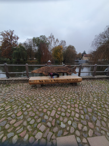 Read moreDer Hechtbrunnen wurde von Prof. Wandschneider aus Plau gefertigt und mit einem plattdeutschen Spruch versehen, der auf Hochdeutsch "Manche Leute sind klug und manche sind dämlich, lasst sie spinnen, Kinder lasst, die Glocke hat geläutet, der Hecht ist...