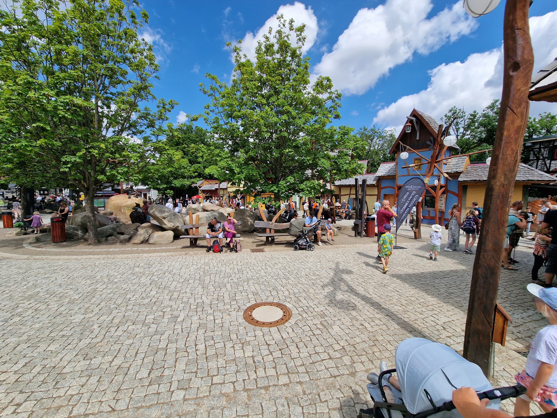 Die Atmosphäre wirkt überfrachtet und unübersichtlich. Der Platz ist mittlerweile fast vollständig auf Tagesgäste mit Kindern ausgerichtet – ein großer Spielplatz steht im Zentrum. Wer Natur oder Historisches sucht, kommt hier kaum noch auf seine Kosten.