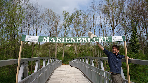 It's a nice bit of landscape. Some people try to navigate the stairs with a maxicosi, providing comic relief for others. I especially liked the fact that they had put a rope up trying to prevent people from going to a nice lookout spot, but that they'd also added a fence, so all the idiots (inluding me) who want to break the rules can do so safely. There where some nice rock carving (made by people who hadn't forgotten there pocket knife) and a lot of people who had just scratched there names in. We didn't actually plan to visit, but the rock formation drew out eyes from afar, so this was a sort of bonus trip. There is a brand spanking new bridge from town going to the Teufelsmauer (devils wall) paid for by the local evangelic community. When is hot, you can cool your feet in the nearby stream. And when you're hungry you can get bratwurst at...