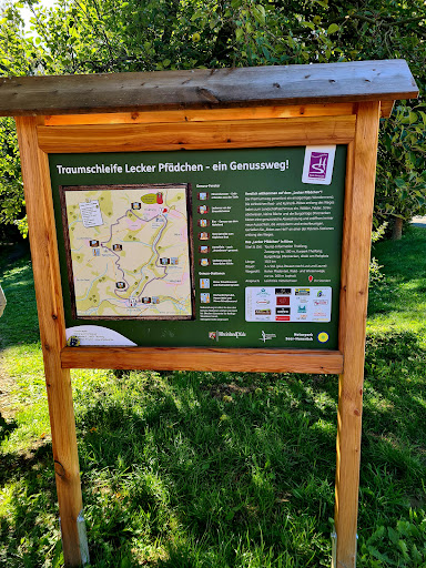 Der Rundwanderweg hat ungefähr 11 km Länge und ist gut zu laufen. Es ist Genussweg, auf dem es 3 Stationen mit Getränken aus der Region gibt. (Sprudel, Wein, Bier). 🍺🍷🥂🍴