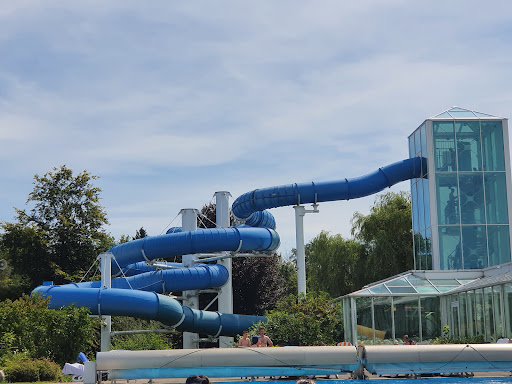 Wirklich sehr schön gelegen, viele unterschiedliche Becken. 3 Kinderbecken die richtig heiss sind, das Becken mit der Rutsche ist tiefer. Das Abenteuerbecken mit dem halbstündigen Powerstrudel war das absolute Highlight für die Kleinen (3 und 5) und die Röhrenrutsche mit Stopuhr für die Grosse (13)
