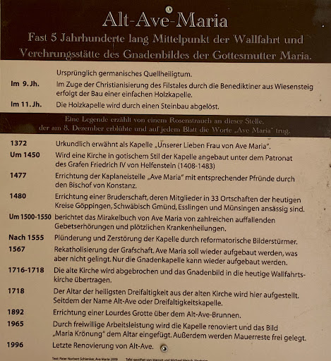 Read moreWunderschöner Wallfahrtsort mit barocker Kirche. Wie oft bin ich schon durch Deggingen gefahren ohne zu wissen, was für eine Kirche diese Ort hat. Ein Nutzer aus Facebook hat wunderschöne Bilder zur Verfügung gestellt. Daraufhin hat es mich dahingezogen. Majestätisch ruht diese Kirche auf Ihrem Berg mit dem Hintergrund des Waldes ohne aufdringlich zu wirken. Es starten 2 Wanderwege an der Kirche: Franziskuspfad mit 1h Gehzeit oder der Löwenpfad mit 3h Gehzeit. Unbedingt gutes Schuhwerk anziehen, da es schmieriger Untergrund, Wurzeln und teilweise steil hochgeht Kirche ist mit Kleinkindern und Kinderwagen gut zu erreichen, aber die Wanderpfade sind nur für Menschen gemacht, die sich auf den Füssen sicher fühlen. Wer hat...