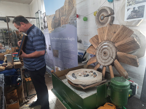 Ein richtiger, kleiner Geheimtipp. Eine der letzten Kugelmühlen überhaupt. Hier scheint die Zeit ein bisschen stehen geblieben zu sein. Aber im positiven Sinn. Für ein kleines Eintrittsgeld von 3 Euro lernt man hier, wie aus einem großen Steinblock wunderschöne, glatte Kugeln entstehen. Allein nur durch die Kraft des Wassers. Die Kugelmühle wird ehrenamtlich betrieben und finanziert sich selbst, durch den Verkauf von Kugeln, den Eintritt und eben viel Enthusiasmus der lieben Menschen, die hier ihre Freizeit opfern fürs Ehrenamt. Ein echtes Kleinod, das hoffentlich auch lange weiter bestehen wird. Der Eintritt ins Museum ist auch mit Rollstuhl möglich. Kinder sollten nicht ganz so klein sein, dass sie das ganze schon begreifen können, sonst kanns für die Kleinen langweilig werden und für die Großen stressig.😊 Der Herr der uns die Vorführung gegeben hat, hat alles super erklärt und uns auch alle Fragen beantwortet....