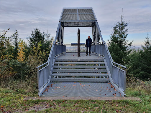 Read moreVom ausgewiesenen Parkplatz gelangt der Wanderer über eine beschilderte Weglänge von ca. 700 Metern zum Ausblick. Ein schönes Panorama bietet sich dem Wanderer mit verständlichen Informationstafeln. Von dort gelangt man ein Stück durch den Wald, zum Turm - Grundstein. Alles in allem eine schöne, liebevoll angelegte Anlage die der Wanderer dankend annimmt. Leider fahren dort, im Wald große LKW herum die Baumstämme abtransportieren und sicher mitverantwortlich sind, dass die Info - Schilder ramponiert wurden. Aber sonst,...