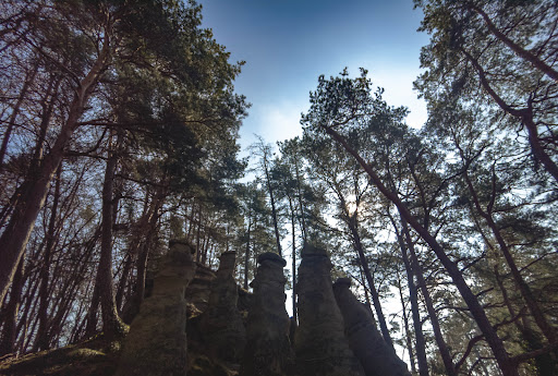 Die Höhle am Fuße ist zwar weder groß noch tief, rundet diese Naturdenkmal aber ab. Man sollte auf jeden Fall trittfest sein, wenn man hier herumspaziert, denn die Wurzeln und Waldwege sind nicht überall vollständig ebenerdig.