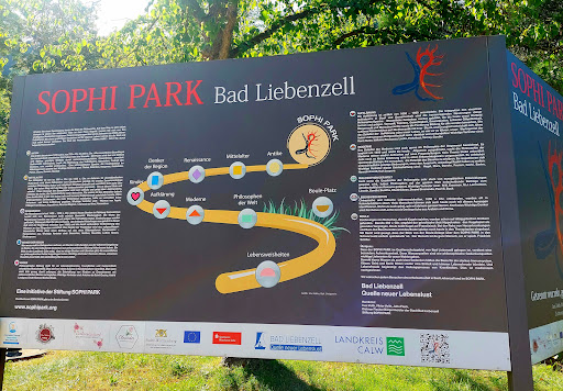 Die Geschichte des Sophi Park : Der SOPHI PARK wurde im Jahr 2014 eröffnet und hat seitdem eine besondere Stellung in Bad Liebenzell eingenommen. Die Anlage ist nicht nur ein Ort der Erholung, sondern auch ein philosophischer Themenpark, der sich mit den großen Denkern und ihren Ideen auseinandersetzt. SOPHI steht dabei für "Sophia", das griechische Wort für Weisheit. Die Idee hinter dem Park ist es, den Besuchern nicht nur einen schönen Platz zum Verweilen zu bieten, sondern auch Denkanstöße zu geben.