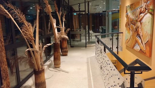 The facilities are a bit confusing. Sauna guests also use the general changing rooms and lockers. Since I didn't find any collective changing rooms, I undressed directly in front of a free closet instead of dislocating myself in a narrow cabin and dragging all my clothes several meters to the locker. And I noticed that a woman behind me was doing the same. Since it is better to swim before taking a sauna (at least if you want to perform more intensively), I first went to the different mineral pools on different floors and to the outdoor pool as well. The textile steam bath above is mostly occupied with ceremonies. Unfortunately, you can't really "swim" in any of the pools. Swimming against the current channel in the ground floor is only possible until other guests simply want to drift in circles. Possibly it would have been possible to swim there during the opening hours of the corresponding open air bath. In the sauna area, on the way to which you pass a bistro, there are two saunas, a plunge pool and a relaxation room with heated stone loungers directly in the building. The savannah sauna and the steam bath can be reached via a short footpath outside, past a heated outdoor pool with bubble loungers. From there a spiral staircase leads to a relaxation room. The sauna garden leads to two log cabin saunas and the salt cave as an earth bunker. There is also a nature pond, which you can enter. Newly built on the left is a complete area with two more saunas and a second bistro. During the infusion times, the guests gather where the infusion will take place soon, otherwise it's pretty much lost. The pricing seems complicated to me and not quite cheap. Those who come by car have two parking places to choose from. From either of them one has to walk approximately 250 m. The car park is located at the end of the road. At the ticket machine, one gets two vouchers. While one is placed on the dashboard in the car, the full parking fee is credited to the bath entrance upon presentation of the other at...
