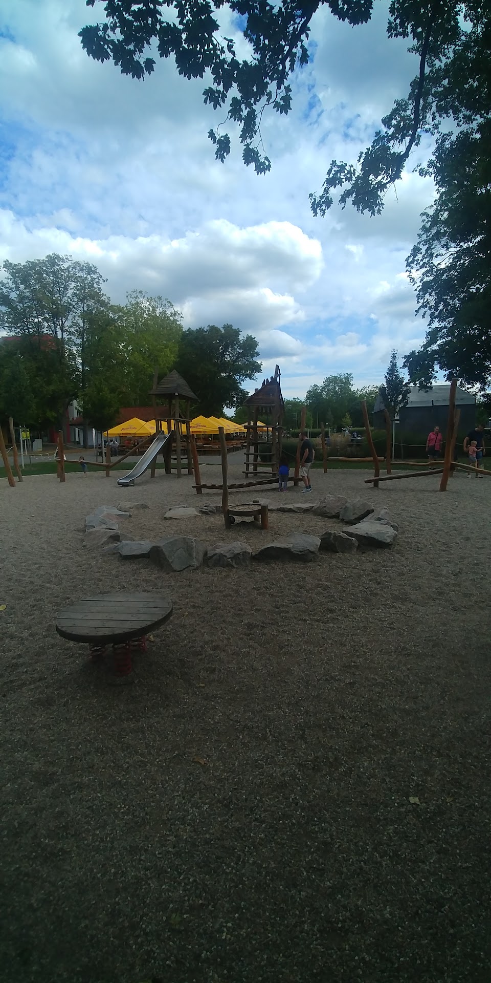 There is A park with plenty to climb for children and adults. There's a whole exercise route, then nearby is the little cafe that has a simple menu, tonight there was live music and a bouncy house. We had bratwurst, gyros, ale......