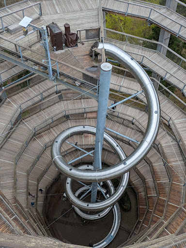 At the end of the path is a 40 meter (~130 foot) observation tower with 360 degree views of the area. It was stunning. For 2 Euro per person, there is an enclosed spiral slide back to the ground level, but you can also walk if you prefer. Children must be 6 to ride the slide.
