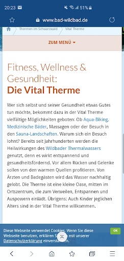 Read moreIch hatte kürzlich Gelegenheit, die Vital Therme in Bad Wildbad zu besuchen, und meine Eindrücke sind eher gemischt. Die Therme an sich ist, um es ehrlich zu sagen, nichts Besonderes. Sie bietet die grundlegenden Einrichtungen eines Thermalbads, jedoch ohne die Raffinesse oder Anziehungskraft, die man von modernen Spa- und Wellnesszentren erwarten würde.