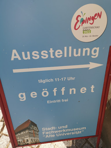 Stadt- und Fachwerkmuseum "Alte Universität" - also vorweg und auf einen einfachen Nenner gebracht: ein wunderschönes Gebäude mit einem liebevoll eingerichteten Museum. Das Gebäude ist das größte und höchste Fachwerkgebäude in Eppingen und wurde im Jahre 1494/1495 erbaut - der Baustil ist alemannisch. Die ständige Ausstellung befasst sich schwerpunkt- mäßig mit der Stadtgeschichte und dem Thema Fachwerk, was natürlich super zu Eppingen als Fachwerktstadt passt. Weitere Themen sind das Brauwesen im Erdgeschoss und das Thema Eppinger Handwerk - zahlreiche Wechselausstellungen runden das Angebot ab. Ein Besuch lohnt sich - zumal kein Eintritt anfällt - ein dickes Lob an die Betreiber des Museums. Man könnte auch - frei nach dem Eppinger Stadtmotto sagen - ein...