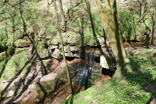 Am Fuße des Wasserfalls ruht ein 1,7 m hoher, 1 m breiter und 2 m langer ca. 8-10 Tonnen schwerer Sandsteinquader, der im Laufe der Zeit aus dem Wasserfall durch Erosion herausgebrochen ist.