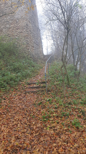 Read moreGeschichte, Besitzer usw. Kann man alles an einer Infotafel vor Ort nachlesen.Nur wenig Reste, die sind aber sehenswert. Große Schildmauer und Halsgraben, weiter Bergfriedstumpf vorhanden. Parken am besten beim SSV, dann Feldweg lang durch den Wald. Da sieht man dann ein Mauerstück, wie ein Brunnen, dahin, durch ein Waldstück und die Treppen in den Graben runter und drüben...