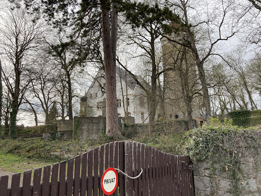 Alvensleben heiratete im reifen Alter von 60 Jahren eine 18jährige sehr junge Frau von Berlichingen, die zum zahlreichen "verarmten niederen Adel" zählt, "von Berlichingen" gab es immer viele, aber sie haben nichts. Das verfallene Burggelände kaufte er mit 75, nach der Fertigstellung mit fast 80 Jahren starb er. Seine Frau überlebt ihn um fast 50 Jahre. Das Gebäude war auch bald ein Sanierungsfall. Der dazugehörige Garten hinter der Burg war schnell Wald, die gesamte Anlage blieb ein einfaches Wohngebäude, teuer im Unterhalt. Später passierten einige Katastrophen, grössere Zerstörungen im 2. Weltkrieg, vor Jahren lief ein undichter Heizöltank im Keller aus, was den Boden zu Sondermüll machte. Interessanter wie das Hauptgebäude und in seiner Basis wesentlich älter ist der überragende Turm, der Götzenturm, den man auch aus weiter Ferne sieht. Er ist prägend für das Stadtbild. Die Basis besteht aus mehreren Meter dicken Mauern. Der obere Teil wurde im Krieg beschädigt, entspricht aber renoviert wieder der alten Form.
