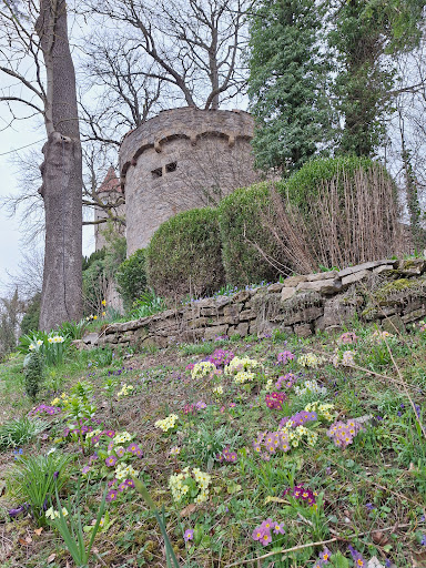 Die Möckmühler Götzenburg ist gut aus der Entfernung sichtbar, aber einschliesslich des äusseren Bereichs Privatbesitz, kein Zutritt. Allerdings gibts auch innen nicht viel zu sehen. Das Gelände ist mit hohen Bäumen bewachsen, leer und langweilig. Kunsthistorisch ist das Hauptgebäude innen wie aussen uninteressant, es stammt aus dem frühen 20. Jahrhundert und ist im zur Bauzeit bereits veralteten neugotischen Spukschloss-Stil gebaut. Entstanden ist es, nachdem der ältliche preussische Ex-Militär Gustav Hermann von Alvensleben die baufälligen und nur noch als Armenhaus genutzten Burgruinenreste von der Stadt kaufte, worüber man in Möckmühl jubilierte, endlich einen Dummen gefunden zu haben der dort Geld hineinsteckte und auf eigene Kosten baute.