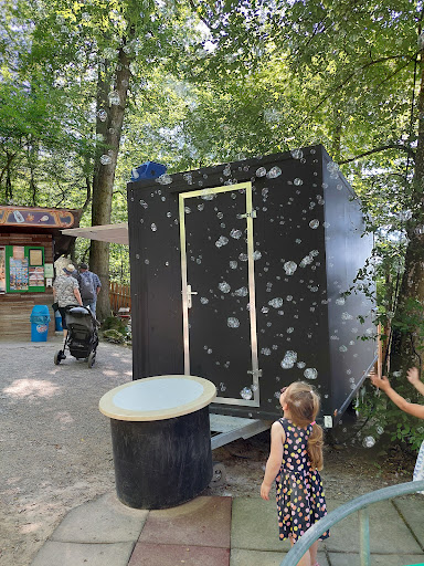 3.) Sanitäre Möglichkeiten GENIAL GELÖST für Wald-Verhältnisse und vor allem angepasst an das "Publikum". Es gibt richtige Toiletten und Waschbecken. Sogar an Desinfektionsmittel, WC-Auflagen für Kinder und sogar eine Wickelmöglichkeit wurde gedacht. Toll.