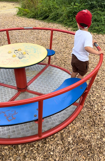 Etwas in die Jahre gekommen, der eine Turm wo wohl früher eine Rutschbahn auf der anderen Seite war wackelt spürbar. Das Holz wirkt generell sehr alt, ansonsten gut zum Klettern und mit einem scheinbar neueren Art Karussell das leider optisch...