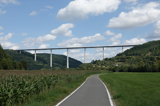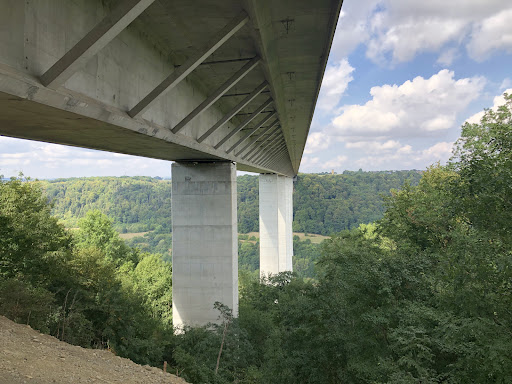 Read moreEine ingenieurstechnische Meisterleistung, die zurecht 2016 mit dem Deutschen Brückenbaupreis prämiert wurde. Die Brücke beeindruckt insbesondere durch ihre Länge (1,2 km) und ihre Höhe (mit 185 m Höhe über Talgrund ist sie die höchste Talbrücke Deutschlands). Den 50 m Spaziergang vom Rastplatz an der Autobahn zum Infopoint unter der Brücke sollte man schon wegen des imposanten Blickes von unten auf Brückenkonstruktion machen. Einfach durch das Tor oder die Türe im Wildzaun gehen, aber nicht vergessen diese wieder hinter sich...