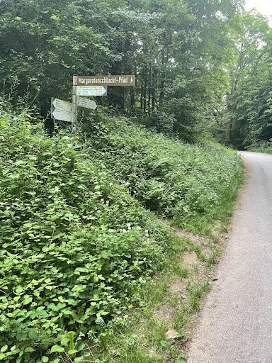 Read moreDie Margaretenschlucht hat mich sehr überrascht! Sehr Rustikal und einfach nur wow.... Wir haben unsere Wanderung vom Bahnhof/ Haltestelle Neckargerach begonnen. Sie führte über eine Kreisel Fußgängerbrücke über die Bahngleise. Ein Schlenker nach rechts entlang eines rustikalen Weges mit vielen Überraschungen übergehend entlang der Felsen mit Weitblick über den Neckar. Die erste Etappe endet vor dem eigentlichen Beginn der Margaretenschlucht mit einer Sitzecke. Und hier endet auch die Möglichkeit diesen Weg weiter mit Kinderwagen, oder Kleinkinder zu gehen. Selbstverständlich entscheidet dies jeder für sich selbst.... Nach einer kleinen Pause geht es weiter auf engen Faden über Wurzeln, Steine... Mit gigantischer Schönheit öffnet sich die Margaretenschlucht den Besucher. Nimmt ihn mit ihrer natürlichen rustikalen Schönheit gefangen. Ab hier geht es Bergauf... Manche Steinstufen bis ca.60 cm Höhe, gebückt unter einem Felssprung, jedoch stets perfekt seitlich gesichert. Heute war es wegen fehlenden Regens trocken, aber es ist für den Wanderer mehr als nur vorstellbar das bei Nässe mit Rutschgefahr zu rechnen ist. Der Weg führte nach gut einer Stunde aus der Schlucht erneut zu einem überdachten Sitzplatz der zur Pause einlud. Ab hier hat man verhältnismäßig leichte Wege. Der nahe gelegenen Truthahnzucht lädt zum Feiern und der Hofladen zum Kauf ein. Nach gut 2,5 Std. erreichten wir unser Startziel und hier lädt das "Gasthaus zum Bahnhof" den müden Wanderer zum...