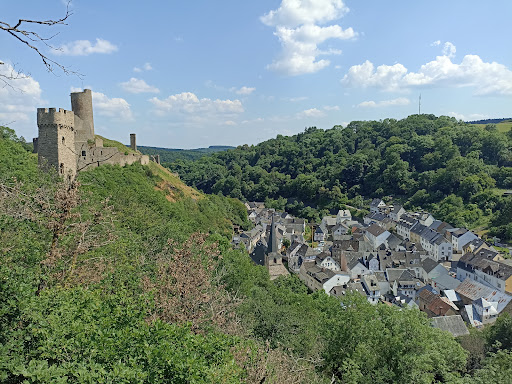 Read moreMonreal ist ein Traum, der Wanderweg selbst ist ok. Meist durch Wald, unterbrochen von Feld und Wiese hier und da. Keine wirklich nennenswerten Aussichten auf dem Weg. Mir ist nicht ganz klar, warum der Monrealer Ritterschlag Mal zum schönsten Wanderweg gekürt wurde. Unterscheidet sich in nichts von jedem anderen Weg durch Wald und Feld. Ich dachte, vielleicht seien es die Burgen. Diese hatten wir uns (weil wir den Wanderweg im Uhrzeigersinn gewandert sind) zum Schluss aufgehoben. Der heftige Anstieg am Schluss hatte es in sich, allerdings wäre ich ihn noch ungerner runter gewandert, daher war im Uhrzeigersinn durchaus die bessere Alternative. Mich persönlich als Kind vom Rhein, der die vielen Rheinburgen quasi vor der Tür hat, haben die Philippsburg und die Löwenburg etwas enttäuscht. Nicht überwältigend, aber okay zum einmal gesehen haben. Negativ: an der gesamten Burg ist nur eine einzige Bank (ohne Tisch), auf der man Rast machen kann. Wer sich also die Brotzeit für die Burg aufgehoben hat, wird ggf enttäuscht. Fazit: ich denke, der Ruf des Ritterschlags ist allein dem malerischen Dörfchen Monreal geschuldet, das uns absolut entzückt hat. Mehr Zeit für den Ort einplanen als für den Weg...