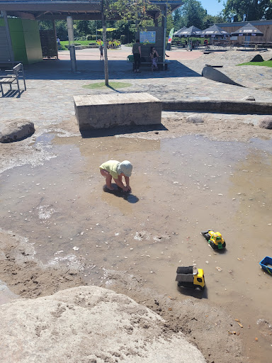 Read moreFür Kinder zwischen 1 und 10 Jahren gleichermaßen geeignet. Für ältere Kinder gibt es eigentlich auch noch genug zu entdecken, aber das kommt auf das Kind an, ob es Spaß z.B am outdoor gym findet. Der Sandkasten hat Wasser, also Wechselkleidung nicht vergessen, oder das Kind fern halten. Gibt genug andere "Attraktionen". Allerdings macht es dies auch schwierig, den Überblick über mehrere Altersgruppen zu behalten, da der Park sehr weitläufig ist und ein Heckenlabyrinth hat, in dem Kinder gerne mit anderen spontan verstecken spielen bzw unbemerkt in andere Teile abschweifen können. Deshalb gehe ich grundsätzlich nur mit weiteren Aufsichtspersonen hin, da meine Kids durch den Altersunterschied nicht ständig beeinander bleiben wollen und ich es schön finde, wenn sich Gruppen Gleichaltriger formieren, die auch neue Bekanntschaften mitspielen lassen und die Kids mal so richtig...