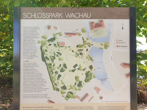 Das Barockschloss Wachau ist eine symmetrische, hufeisenförmige Schlossanlage im Stil des Dresdner Barock auf einer von einem Wassergraben umgebenen rechteckigen, etwa 3.400 Quadratmeter großen Insel in Wachau. Momentan ist hier jedoch eine große Baustelle. Ein Spaziergang im Schlosspark mit Beobachtung der Störche auf dem Schornstein des Schlosses lohnt...