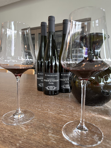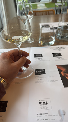 Wir hatten im Globus SB-Markt einen Wein von Schneider entdeckt ,,Black Print" ein wahrhaft herrlicher Tropfen, wie man ihn bei Deutschen Weinen eher selten findet. Die Interesse an diesem Wein trieb uns am 19.08.2025 direkt zum Weingut Markus Schneider. Sehr beeindruckend und stilvoll, was aber schnell in kalt und steril überging. Wir kamen mit der Absicht, natürlich diesen Black Print zu kaufen. Es saß eine Dame im Verkaufsraum die uns zwar freundlich begrüßte und uns prompt 18 Fl. Wein in Rechnung stellte. Keine Nachfrage nach weiteren Wünschen, oder mal etwas probieren. 14 Tage vorher hatte ich angerufen und mich nach Weinpräsenten erkundigt; ja natürlich erzählte man mir am Telefon und vor Ort bot man mir dann nur eine 3er Geschenkbox an, sonst nichts. Keine zusätzlichen Informationen, was eigentlich auch so seitens der Verkäuferin hätte kommen können. Erst nach meiner Nachfrage, ob es auch Magnum Flaschen gäbe, hatte man kopfgenickt und mir noch mal schnell 2 Flaschen im 3er-Karton im Lager geholt. Ich hätte auch diesen 3er Karton bestimmt aufgefüllt, wenn man gesagt hätte, dass die 3. Flasche ggf. einen kleinen Dankeschönrabatt hätte, aber man spürte von Anfang an, dass der Endverbraucher nicht mehr die Basis des Erfolges ist, sondern die Belieferung von Großunternehmen und ggf. Weingroßhandel in aller Welt mehr zählt. Dieser Black Print ist spitze, aber wir hätten uns den Weg von Karlsruhe nach Ellerstadt lieber ersparen sollen, denn der Spaß an diesem tollen Wein, wurde durch das Besuchserlebnis dort, doch schon etwas getrübt. Wir suchen nun nach neuem Spaß, es gibt sie noch die kleineren Winzer mit Tradition und Gastfreundlichkeit und...