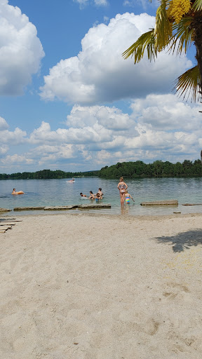 Read moreWenn man nur den Badesee an sich bewertet, dann voll 5 Sterne! Der klarste See, den ich bisher gesehen habe. Der Boden besteht aus weichem Sand under der Einstieg ist sehr einfach und flach. Man kann bis auf den Boden sehen und das Wasser hat eine schöne Farbe. Ein extra Sandstand mit Palmen bietet einen gewissen Flair. ABER: Einen Stern muss ich u.a. für fehlende Umkleidemöglichkeit abziehen. Man kann zwar für 70 Cent den Toilettenbereich (mit Umkleideka binen) nutzen, aber schöner wären verteilte Kabinen am Strand. Gut, dafür muss man keinen Eintritt zahlen. Was ich aber auch als sehr unschön und unhygienisch empfunden habe: der See ist groß - warum müssen Hundebesitzer ihre Hunde dann genau an oder direkt neben dem kleinen Sandstand ins Wasser lassen? Und warum lässt man sein Tier dann auch noch direkt auf der Sonnenwiese sein Geschäft...
