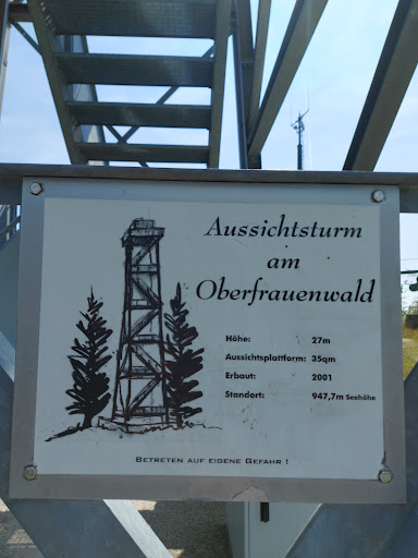 Wir sind eine etwas größere Runde den Oberfrauenwaldweg durch die wunderschöne Natur und teils sehr steilen anstiegen auf den Aussichtsturm gewandert. Die letzten 200 m bis zum Aussichtsturm waren sehr steil und nicht sehr gut befestigt. Aber der Ausblick von dem Berg und dem Turm selbst war super schön. Wir hatten auch perfektes sonniges Wetter. Ein Ausblick den man selten erlebt wenn man keine " größeren " Berge kennt. Für uns war es eine kleine Herausforderung aber es hat sich wirklich gelohnt. Aber es ist wirklich nur etwas für Menschen die sich sicher sind und fest im Tritt den steilen Berg hinauf laufen können. Das sollte hier definitiv...