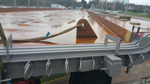 This old Henrichenburg ship lift from 1899 is a must see for 19th century mechanical engineering and steel construction lovers. It is now museum and part of a larger complex with a shaft lock with water tanks, a new ship lift decommissioned in 2005 and a new long lock which is still in operation. They all form the lock park Waltrop.