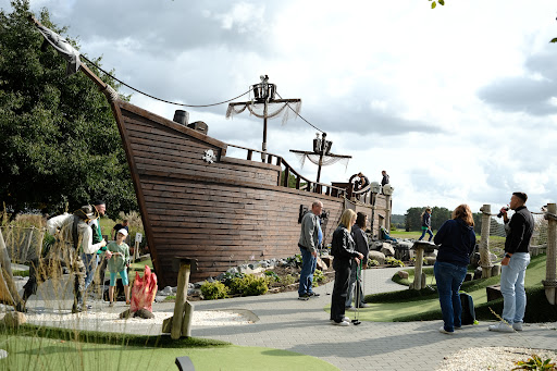 Read moreHeute das erste mal da gewesen. Personal ist sehr freundlich. Die Bahnen sind schön gemacht und das wichtigste, sie sind sehr gepflegt. Hat man selten. Von der Schwierigkeit ist kaum eine Bahn die zu Frust führt. Lediglich zwei Bahnen sind auf keinen Fall mit ein Schlag zu schaffen. Kinder ab 7j. sollten hier ihren Spaß haben. Allgemein ist für Kinder viel zu sehen. Das theming ist schön, eine Bahn im und auf den Schiff. Ein Floß zum hin und her fahren. Preis finde ich daher sehr gerechtfertigt. Ein Essenswagen ist auch vor Ort. Sehr lecker aber preislich doch schon eher im oberen Bereich. Aber gut, ist ja derzeit überall so. Verbesserungsvorschläge: Noch schöner wäre tatsächlich, wenn auf der kleinen Fläche daneben, noch ein kleiner Spielplatz mit Schaukeln, Tunneln etc wäre. Dann könnten Oma , Opa, Mama , Papa in Ruhe noch was trinken und verzehren und die Kinder könnten nach der Minigolf Runde noch auf den Spielplatz spielen. Mir fehlt ein Beschreibung an den Bahnen. Allgemein sollte man bei solch großen Minigolf Bahnen nicht mit typischen Punktsystem rangehen, sondern wirklich mit Golf regeln. Sprich Birdie, Paar etc. und dazu fehlt die Beschreibung auf den Bahnen. Glaube zb. Bahn 3 ist bestes Beispiel dafür. Klar kann man über die Hügel abkürzen. Aber schöner ist doch auf den Green zu bleiben und das Labyrinth zu meistern. Da wäre zb. 4 Schläge ein Paar. Das wird jetzt die klassische Familie die mal kurz Spaß haben wollen eher weniger interessieren aber die Golf und Minigolf- Enthusiasten die viele Bahnen überall besuchen, würden sich sicher darüber freuen. Tjaaa und zu guter Letzt , weil ja doch viel Fläche da ist. Haben sie schonmal überlegt PitPat Bahnen hinzuzufügen?! Das wäre auch was im tollen Piraten Setting. Das waren jetzt nur Verbesserungsvorschläge auch ohne diese lohnt es sich hinzufahren und deshalb gibt's von mir auch volle...