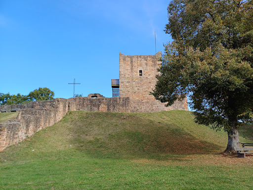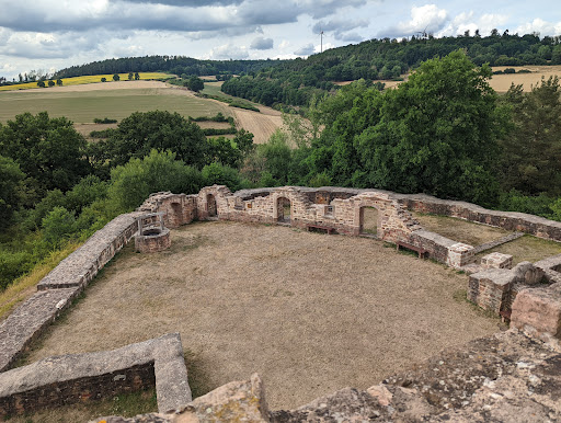 Read moreZu Fuß gut erreichbar, bis auf einen übrig gebliebenen wuchtigen Turm sind die meisten, oft nachgebauten Mauerreste - verglichen mit vielen anderen deutschen und auch hessischen Burganlagen - nicht sonderlich spektakulär. Informative Schautafeln, eine Sitzecke sowie öffentliche WCs sind vorhanden. Direkt vor dem Ziel windet sich der Fußgängerweg unter einer Bahnunterführung durch, die nur etwa 1,70 m hoch ist, hier muss sich fast jeder bücken, und andere Spaziergänger standen ebenfalls erstmal irritiert vor dem fest verschlossenen Bahnübergang. So ein Quatsch. Bei Schnee oder Matsch wird es dort ja noch niedriger sein. Für Mai 2025 ist ein kleines Burgfest geplant, allerdings ohne Mittelaltermarkt. Fahrzeit: diese kleine Burg kann man sich für einen kleinen Frühlingsspaziergang mal anschauen, ansonsten lohnt es sich...