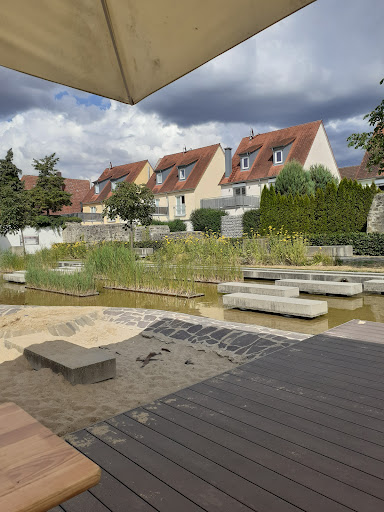 Auf der Fahrt durch Wassertrüdingen haben wir einen kurzen Zwischenstopp im Biergarten/Café am Sonnenuhrenpark eingelegt, der seit der Landesgartenschau 2019 existiert. Wir wurden freundlich bedient, es gab eine große Auswahl an selbstgebackenen Kuchen, Kaffeespezialitäten und Erfrischungen. Man sitzt dort sehr lauschig auf einem Platz neben den Wasserläufen und dem Spielplatz. Parken kann man im direkt angrenzenden Sträßchen. Hoffentlich bleibt das Kiosk noch...