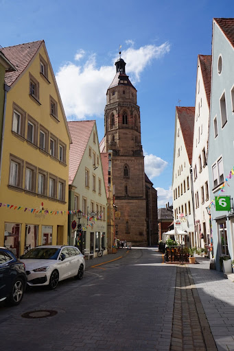 Pierwsza świątynia chrześcijańska została zbudowana, na terenach dzisiejszego Weissenburga, gdzieś w VIII wieku, jeszcze za czasów Karola Wielkiego, władcy Franków. Był tu jeden z dworów, więc i kościół był niezbędnym. Sam król nawiedził swe włości w 793 roku. W XI wieku biskup Gundekar II. z Eichstatt konskreował dwa przedromańskie kościoły. Z czasem przebudowano je w stylu romańskim, zapewne wtedy, gdy Weissenburg otrzymał prawa i stał się wolnym miastem cesarskim. Z kolei w 1327 roku wyświęcono, gotycki już, kościół św. Andrzeja. Około 1400 roku rozebrano stare prezbiterium i rozpoczęto budowę nowego, wysokiego chóru, który konskreowano w 1425, a przesklepiono w okolicach 1440 roku. Między 1459 a 1481, zbudowano cztery kondygnacje południowej wieży, której górną galerię ukończono w 1520 roku. 15 listopada 1530 roku, w farze, bo tę godność kościół św. Andrzeja piastował, odbyło się swoiste referendum, w sprawie wiary. 447 mieszkańców opowiedziało się za przyjęciem Confesio Augustana. Siedmiu pozostało wiernymi doktrynie katolickiej i Rzymowi, no i ciupasem musieli z miasta wyjechać, zapewne z przyczyny "wyjątkowej tolerancji" zreformowanych sąsiadów. Kościół rychło sprofanowano i przemieniono w zbór. Wojna trzydziestoletnia przyniosła świątyni spore zniszczenia, a kiepskie, barokowe naprawy solidnie nadwątliły stare mury. Po połowie XIX stulecia przeprowadzono remont, czerpiąc z zasobów stylu historycznego i stylizując ile się tylko dało. W 1850 sprzedano (sic!!!) całe wyposażenie kościoła. Dwudziestowieczne renowacje przywróciły mu dawny wygląd. Sprowadzono też nieco cennych artefaktów, a dawna dzwonnica, w wieży, została zamieniona w skarbiec, w którym eksponowane są skarby sztuki sakralnej sprzed wieków. Budynek kościoła, w zamierzeniu budowniczych, miał przypominać norymberską farę, czyli św. Sebalda. Brak pieniędzy i miejsca sprawiły, że oś kościoła jest cokolwiek dziwną, jakby złamaną, ale zdecydowanie nie szpeci to budowli nawet na jotę. Kościelna wieża, Andreasturm ma 65 metrów wysokości i pełni rolę dzwonnicy, mieszcząc cztery dzwony: modlitewny, mszalny, południowy (dzwoniący w południe) i burzowy ostrzegający przed nawałnicami. Starsza, północna wieża, pochodzi z XIV wieku i zdobią ją interesujące, kamienne okna. Wewnątrz godnymi obejrzenia są ołtarze. Ołtarz główny, zwany ołtarzem św. Andrzeja, jest dziełem Michała Wolgemuta, pryncypała i nauczyciela młodziutkiego Durera i pochodzi z 1500 roku. W jego centrum siedzi figura św. Andrzeja, a po bokach otaczają go wymalowane postacie sześciu apostołów. W obejściu północnym znajduje się późnogotycki ołtarz szafowy, z 1496 roku, zwany ołtarzem św. Sebalda, który przypisywany jest samemu Witowi Stwoszowi (?). W centrum piękna Madonna z Dzieciątkiem, opierająca stopy na półksiężycu. Po prawej św. Bnedykt, po lewej sw. Sebald. Na predeli Czternastu Świętych Wspomożycieli. Mniej więcej, z 1500 roku pochodzi ołtarz mariacki. Madonna z Dzieciątkiem trzymającym owoc granatu, "obleczona jest w słońce", a chwałę jej głoszą wymalowani w rogach aniołowie wygrywający na różnych instrumentach. Wspomniany wyżej skarbiec, pozostaje zamkniętym i można zerknąć doń jedynie przez szybę w drzwiach, a szkoda(!!!), bo wewnątrz jest sporo skarbów,...