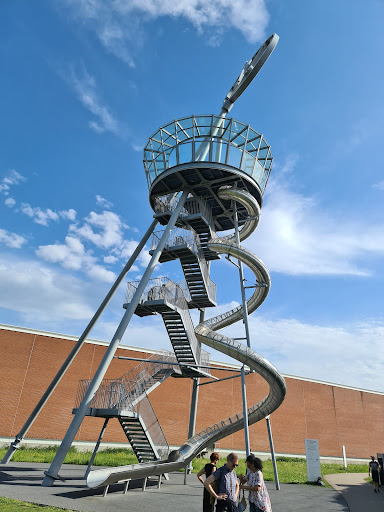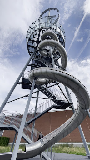 Con i suoi 30,7 metri di altezza, la Vitra Slide Tower dell'artista tedesco Carsten Höller è una torre panoramica, scivolo e installazione d'arte tutto in uno. È costituita da tre colonne diagonali che si incontrano in alto, con un orologio girevole montato nel loro punto di intersezione, di ben sei metri di diametro. Si può accedere alla costruzione verticalmente, attraverso una doppia scalinata integrata tra le colonne inclinate, con pianerottoli intermedi. La piattaforma panoramica posta all'altezza di 17 metri offre nuove prospettive sul Vitra Campus e il paesaggio circostante. La piattaforma è il punto di partenza dello scivolo con tubo a spirale...
