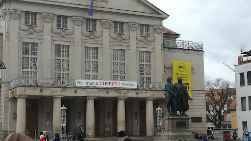 Dieses Haus ist ein sehr frequentierter Ort insbesondere für Liebhaber der Musik. Was dort geboten wird, übersteigt in Orchester-, Chor-, Theater- und Bühnenkunst, nach meinen Erfahrungen, die Qualität vieler wohl bekannter Häuser in Deutschland. Mag es daran liegen, dass die Tradition des Ortes, beinflusst durch Goethe und Schiller, Liszt, Wagner und viele andere Größen ihrer Zeit, noch heute ihr Licht strahlen lässt. In jedem Fall wird sie im lebendigen Wirken der Musiker, von denen viele durch die Hochschule für Musik FRANZ LISZT geprägt wurden, der Sänger, Schauspieler und Tänzer und nicht zuletzt durch das Können des Bühnenpersonals hoch gehalten. Für welche Oper auch immer ist dieses Haus für mich die erste Adresse. Auch wenn man baulich immer noch den Charme des Ostens im Hause spürt, so bietet sich hinter dem Vorhang und aus dem Orchestergraben jedesmal eine faszinierende andere Welt. Die Ausstattung des Bühnenraums bietet u.a. auch mit der großen Drehbühne alle Möglichkeiten, die nie ungenutzt bleiben. Der Vorhang öffnet sich, und man ist nur sprachlos und verzaubert. Wie erst letztlich in der Premiere von Humperdincks "Hänsel und Gretel". Die Bühne war ein einziger dunkelschöner großer Waldesdunst aus dem die Musik zu strömten schien und langsam durch eine großartige tänzerische Leistung zweier guter Geister scheinbar aus einem Körper vorsichtig und faszinierend im dichten Bodennebel halb versteckt Bewegung in die traumhafte Kulisse kam. Das gesamte Stück hindurch begleiteten diese sich wunderbar schlangenhaft bewegenden Geister im Hintergrund. Schon dafür hat sich diese Aufführung sicher nicht nur für mich higelohnt. Man hatte es im DNT Weimar wieder einmal geschafft, alle unangenehmen Dinge da draußen, Kriege, Wahl-Schocks u. beunruhigende politische Entwicklungen für kurze Zeit vollständig auszublenden. Zu anderen Gelegheiten findet man hier in den Inszenierungen großer Bühnenwerke aber auch immer Parallelen und kritischen Bezug zu den Problemen der Gegenwart, was Hilft, selbst Erlebtes besser zu verarbeiten oder auch neuen Mut und Zuversicht zu schöpfen. Ein Besuch lohnt sich...