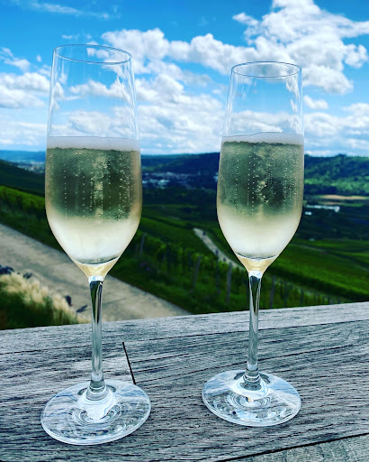 Nicht nur als Sunset Lounge, auch Sonntagmorgens zum Sektfrühstück ist es auf dem Plateau inmitten der Weinberge einmalig schön. Die Aussicht über die saftig grünen Weinberge auf die umliegenden Anhöhen, die das zauberhafte Tal der Rems begrenzen, ist atemberaubend. Das Konzept sieht vor, dass der Ausschank immer wieder von anderen Winzern bespielt wird. Als ich dort war, versah das Weingut Gold den Ausschank. Man sitzt unter Sonnenschirmen an High-Tops oder auf den steinernen Terrassenstufen, die mit Kissen belegt und bequem sind. Der Blanc de Noir Winzersekt Ida Marie mit feinen Bläschen und am Gaumen schön cremig passte zur beschwingten Stimmung des Sonntagmorgens. Der Abstieg durch die Weinberge über steile Staffeln oder weitläufige Kurven fällt danach...