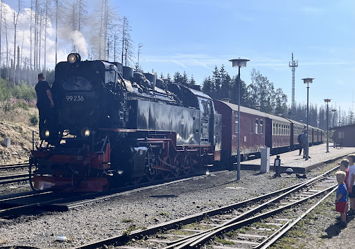 Read moreTrevligt med en Äktur med gammalt tÄg, drivet av Änglok. Givetvis mÀrks röken och luktar en del. Vi Äkte frÄn Wernigerode mot Brocken men klev av i Schierke efter ca 1 tim och Äkte buss dÀrifrÄn en svÀng i Harzbergen, bl annat till St Andreasberg dÀr vi Ät lunch. à ker man Ànda upp till Brocken kan inte bussen ta sig dit utan man fÄr tillbringa en timme dÀr och sedan ta tÄget tillbaka igen. KÀnns vÀldigt onödigt att Äka samma strÀcka tillbaka, speciellt som man mest ser en massa död granskog.. Har man tur med vÀdret Àr det dock fint uppe pÄ utsiktsberget Brocken! Har man dÄligt vÀder (inte ovanligt dÀr) sÄ Àr det...