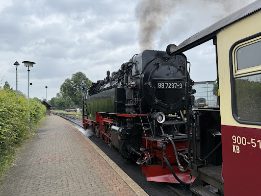 Read moreSchöner kleiner Bahnhof nur wenige Gehminuten von der Innenstadt entfernt. Hier bekommt man Fahrkarten für die HSB Eisenbahn die bis zum Brocken fährt. Alles sehr nostalgisch. Die Fahrkartrn sind nicht günstig und ein Hund kostet 15,-€ extra wenn es bis zum Brocken gehen soll. Aber als Attraktion ist eine Fahrt mit der Dampfeisenbahn natürlich großartig. Leider waren bei uns am Morgen durch Sturm in der Nacht Bäume auf die Strecke gefallen so das wir nicht auf den Brocken fahren konnten und die Fahrt nach zwei Stationen zu Ende war - sehr schade. Die Rückerstattung sowohl des Hunde Tickets am Schalter als auch der Online Ticketes - selbständig durch die HSB und gut mit Emails kommuniziert funktionierte gut, es wurden nur geringe Bearbeitungs Gebühren einbehalten.