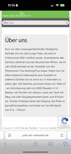 Read moreErst einmal ganz herzlichen Dank an Herrn Wilken. Wir (meine Freundin und ich) waren am 04. Mai 2023 erstmals im Park und waren sehr angetan von der Vielfalt der Raritäten und der gesamten Anlage. Sie ist wunderschön angelegt und eine echte Augenweide. Am 12.07.2023 waren wir erneut im Park, weil wir gern dort im Pavillon oder am Teich etwas Zeit verbringen wollten. Zu unserem Bedauern mussten wir lesen, dass es (leider wieder einmal) Menschen gibt, die einen solchen - mit viel Liebe und Arbeit angelegten - Ort vermüllen. Da stellt jemand unentgeltlich ein wunderbares Kleinod kostenlos zur Verfügung (sogar eine Toilette ist vorhanden) und dann kommen Besucher, die das alles nicht zu schätzen wissen. Schade, dass dann alle, die achtsam mit der Natur umgehen, darunter leiden müssen. Lassen Sie sich, lieber Herr Wilken und Team, bitte durch solche Vorkommnisse nicht entmutigen. Wir freuen uns auf das nächste Mal und haben Ihren Park netten, umweltbewussten Menschen empfohlen. Mit herzlichen Grüßen Ilse Dornbusch...