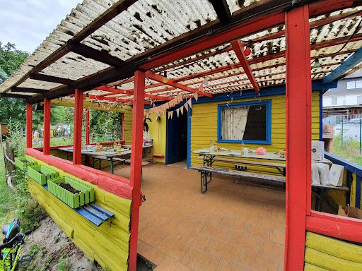 Also ich war das erste mal da mit meiner Tochter und ich muss sagen, ich war total geschockt! Der Spielplatz ist wirklich katastrophal, da Nägel rausragen und das Holz mursch ist. Es sieht auch alles auch nicht belastbar aus irgendwie.... Wir waren zum Tannenbaumschmuck basteln/backen dort, was in einem kleinen Container statt gefunden hat, und da hat's mich echt umgehauen! Es ist dreckig ohne Ende, geputzt wird da wohl nie! Überall steht "Gerümpel" rum. Die Küche war auch nicht sauber, dreckiges Geschirr in der Spühle, Türen babbig, Wäscheständer mitten im Weg (aufgeklappt), Tische dreckig und klebrig und vom Boden wollen wir gar nicht erst reden...! Pfui! Was ich auch unmöglich fand war, dass die Hauskatze einfach auf den Tischen rumgelaufen ist, sogar um die Trinkbecher iiiiiii...!!! Und dann soll man draus trinken??? Ne!!! Mal ganz vom Dreck abgesehen, dort werden wohl auch die Hausaufgaben von den Kindern gemacht. Ich habe ich es nicht verstanden, warum noch ein Junge dort Hausaufgaben gemacht hat, wenn andere diesen Raum auch zum backen benutzen??? Kinder brauchen Ruhe für Hausis...Nun ja gut, ist nicht mein Kind gewesen aber ich kann nur sagen, dass meine Tochter durstig war und ich zu ihr sagen müsste, sie muss warten bis wir hier weg sind....🙈wir waren 30 Min. dort und waren froh als wir wieder draußen waren! Die Idee an sich ist super, lernen durch tun, aber es fehlt definitivf Hygiene und Struktur! Und ein Kindersicheter Spielplatz wäre...