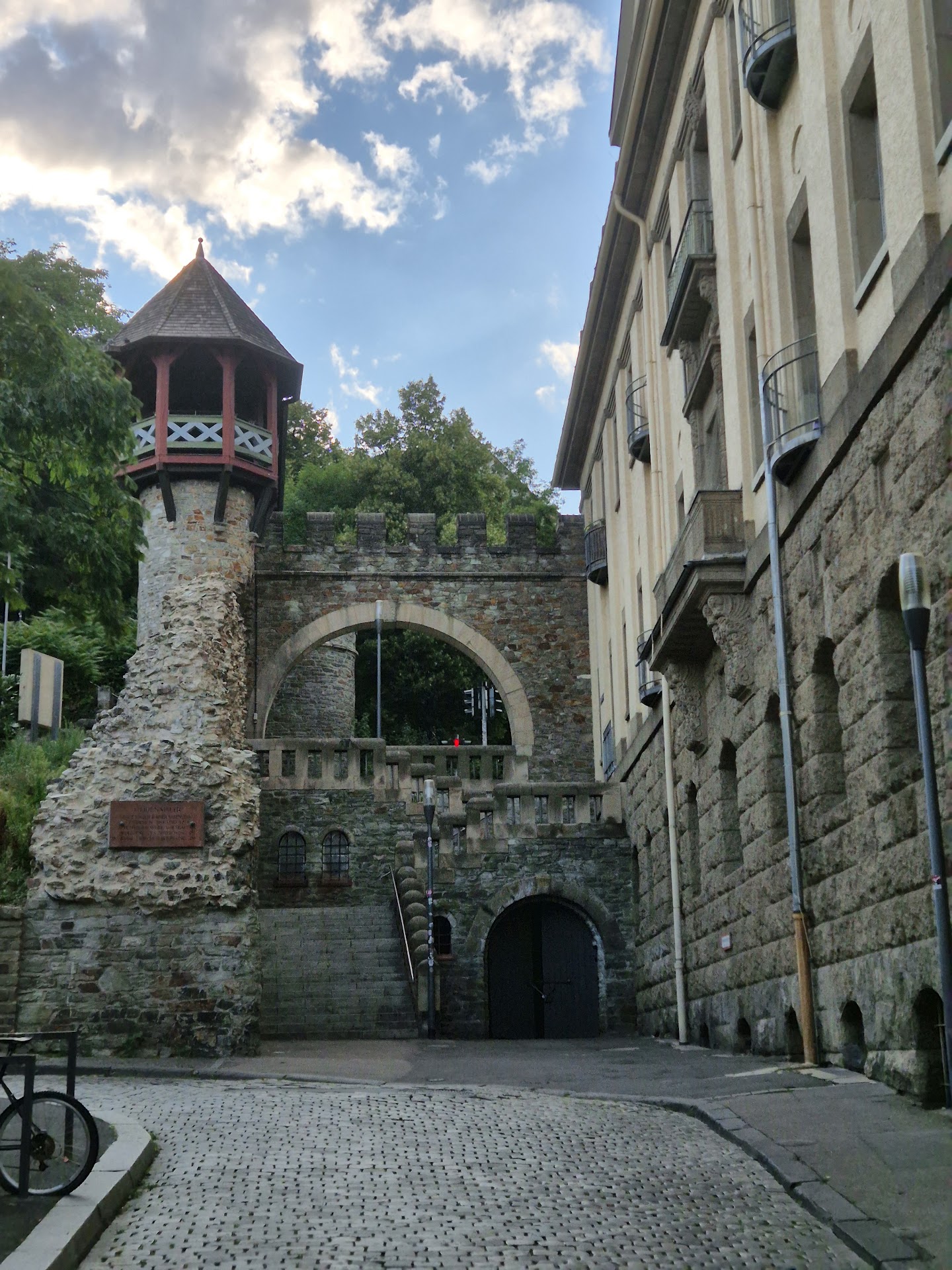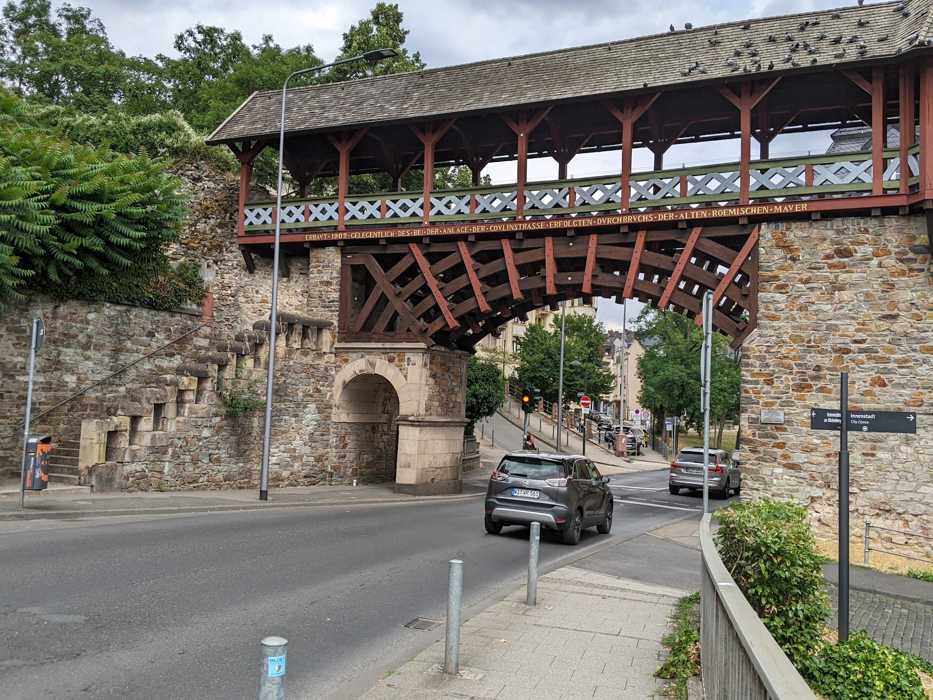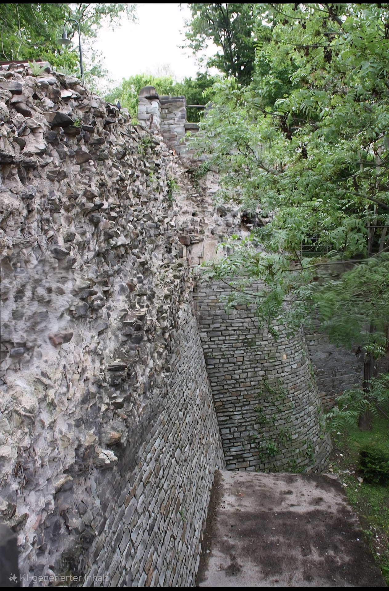 Wiesbaden’s “Heidenmauer” (Pagan Wall) is a late‑Roman remnant from around 364–375 AD, built with mixed stone and brick, featuring a sturdy 3 m‑deep foundation, surviving towers, and reused imperial‑period spolia . Long thought to be defensive, modern scholarship suggests it may be an unfinished barrier or even part of an aqueduct . In 1902, a historicist wooden “Römertor” gate‑bridge was added where the wall was breached . Fragments stand today by the gate, alongside copies of Roman stone...