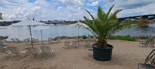 Read moreSchönes altes Gebäude, sehr schöner Strand, Grünflächen mit großen Kastanien, fast kein Lärm von der Brücke zu hören und mit tollem Blick auf den Vater Rhein . Gastronomie gibt es auch, Brezel und Erfrischungs Getränke im sportiven Bereich und Essen mit Beilagen im Terrassen Bereich. Mann kann auch schön Richtung Wasser-Schutz ,bis zum Ende der Halbinsel, spazieren gehen,oder sich auf den direkt am Wasser gelegenen Grünflächen entspannen, auch für die lieben vier Beiner ,recht entsprechend. Am Wochenende und zum Feierabend recht belebt ......
