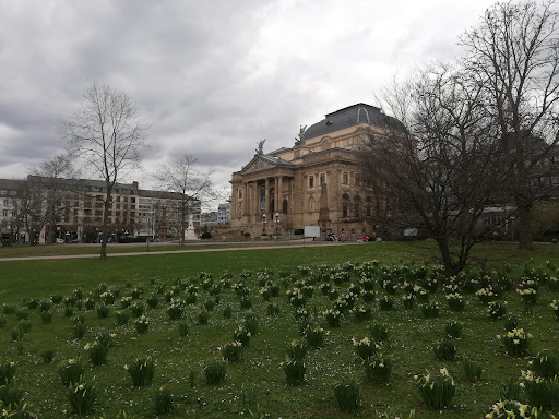 Read moreNunja, der Park ist klein, aber direkt am Theater und bestückt mit riesigen Bäumen. Im Frühling gibt es hier unzählige Frühblüher, das ist ehrlich sehenswert, im Herbst tolles Herbstlaub. Im Winter ist hier nichts geräumt und die Wege sind matschig. Der Spielplatz liegt etwas versteckt hin zum Bierstadter Berg und ist recht schön, aber klein. Aber Vorsicht: es liegen auch Glasflaschen/-Scherben auf dem Spielplatz rum....weil der Park abends Treffpunkt von Jugendlichen ist. Kinder können hiercaber super Laufrad fahren oder Fahrrad fahren üben. Es gibt einen Weiher, der ziemlich grün ist, ich glaube auch bedingt durch die vielen Leute, die trotz Verbot fleißig Enten und Nilgänse füttern. Das ist in Wiesbaden generell verboten, ich frage mich allerdings, warum man nicht hier am Weiher nicht mehrsprachige oder bildliche Hinweisschilder aufstellt. Leider gibt's zu viele Nilsgänse und daher auf den Wiesen sehr sehr viel Kot. In der Umgebung gibt es auch Schlafbäume der grünen Halsbandsittiche und man sieht und hört die Kerlchen auch hier im Park. Sehenswert im Park ist das Goldene Ei (eine Skulptur) und das angrenzende Staatstheater. Gegenüber in der Paulinenstraße neben dem Kurhaus liegt der Eingang in den Kurpark, der ist sozusagen die große hübsche Schwester. Aber dennoch ist der warme Damm einen kleinen Spaziergang wert und eine nette kleine Grünfläche im...