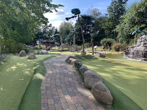 Read moreGrundsätzlich ist dieses Minigolf sowohl für Groß und Klein eine gute Aktion zur Unterhaltung, wenn man nur für den Spaß- und Idyllefaktor 6,50€ pro Person zahlen möchte. Sehr groß, sehr schön eingerichtet und die 18 Bahnen sind abwechslungsreich genug. Eine Klasse Idee, dass man bei einer Bahn mit einem Floß über das Wasser gleiten muss, um diese betreten zu können.